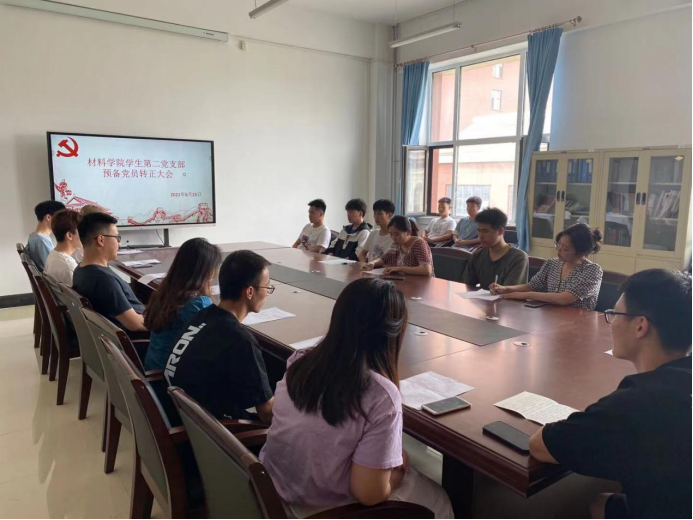 2021年6月25日yl9193永利集团学生第一党支部于材料楼425会议室召开转正大会。本次大会由党支部书记张晓君主持,对王鑫等9名同志是否能如期转正进行讨论和表决。