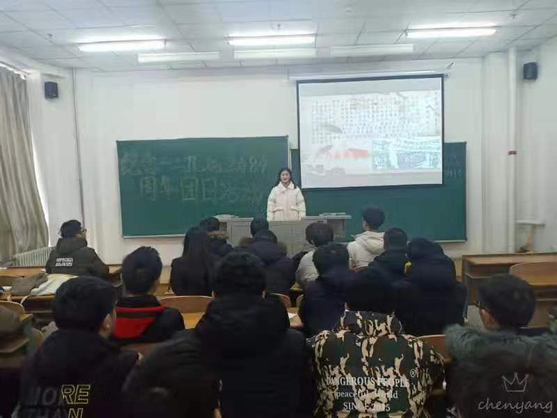 本网讯(通讯员宫悦)为纪念“一二·九”运动84周年,180202班团支部全体成员于北湖主楼1216教室展开以“纪念一二九运动84周年”为主题的团日活动,84年前的“一二九运动”是一场反对日本帝国主义侵略的伟大斗争,青年学子在中国共产党的领导下成为这场运动的主要参与者,充分彰显了中国人民强烈的爱国主义精神。在新时代,我们要继承和发扬一二九精神,牢记新时代青年的责任和使命,矢志不渝地为实现中华民族伟大复兴而努力奋斗。此次团日活动由180202团支部书记陈洋主持,180202班所有团小组参加。