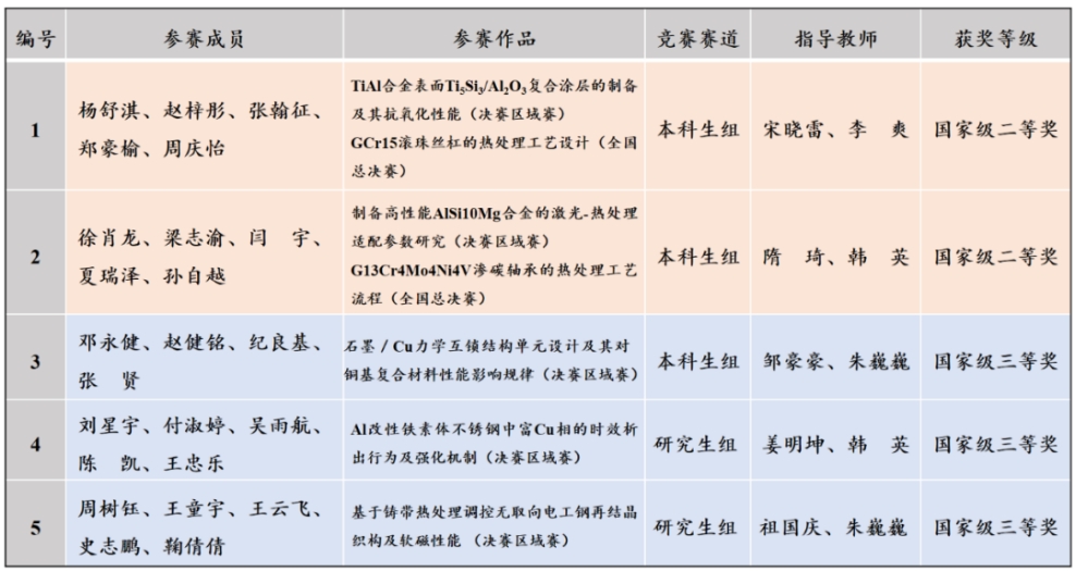 材院网讯(通讯员 焦子钦)2023年7月15-16日,由中国机械工程学会主办,中国机械工程学会热处理分会和江苏科技大学承办的“2023中国大学生机械工程创新创意大赛—材料热处理创新创业赛”在江苏镇江落下帷幕。该赛事自今年2月启动报名以来,得到全国有关院校的积极响应和大力支持,共收到参赛作品1118件,其中本科生647件,研究生471件,报名人数达4693名,参赛作品数和报名人数均达到历史新高。经过初赛、决赛区域赛、总决赛层层评选,以及赛项专家委员会和赛项执委会复核,我院共有3支本科生队伍和2支研究生队伍的作品入围决赛区域赛,其中2支本科生队伍成功入围全国总决赛。经过激烈角逐,我校参赛队伍最终获得二等奖2项、三等奖3项,具体获奖名单如下: