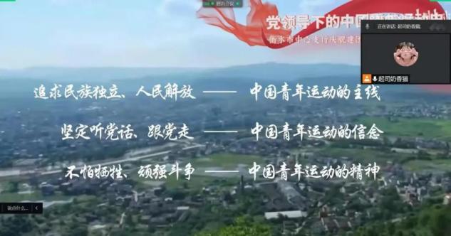 因为当前疫情形态,我们以线上会议的形式带领大家学习党领导下的青年运动史。会上,首先由团支书邱艳雯带领大家观看党领导下的青年运动史专题相关视频。此视频简要概述了青年运动史,让大家大致了解了党领导下的青年运动史。