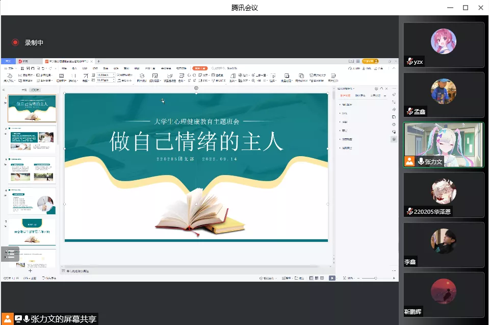 材院网讯(通讯员 冷鹏飞)为更好地开展新生心理健康教育工作,帮助2022级学生普及心理健康常识、快速融入大学生活,2022年9月14日,yl9193永利集团2022级各班开展线上心理健康主题班会,此次班会由各班带班学长主持,全体2022级学生参加此次活动。