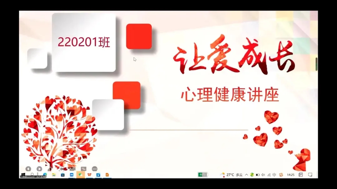 220202班带班学生首先向同学们讲解了关于心理健康教育的意义以及我们为什么要重视心理健康,随后观看了我院17级学生所拍的心理剧。此次班会让同学们懂得了大学生应该调整自己的虚荣心,直面内心,不忘初心,牢记使命,为建设富强民主文明和谐美丽的社会主义现代化强国而奋斗。