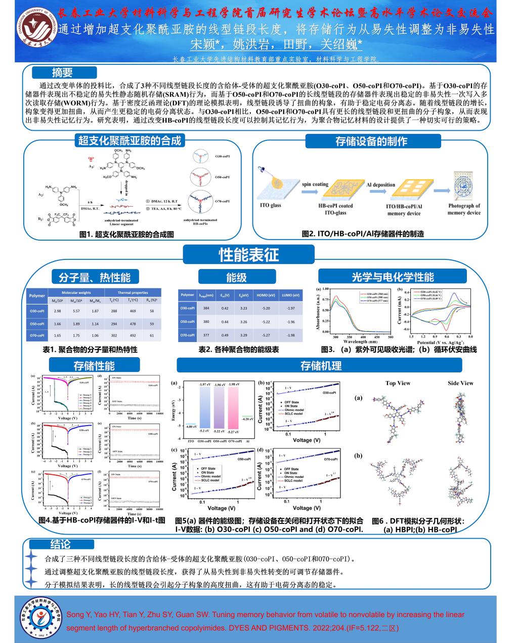 通过增加超支化聚酰亚胺的线型链段长度,将存储行为从易失性调整为非易失性-yl9193永利集团首届研究生学术论坛暨高水平学术论文交流会