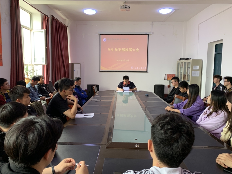 本网讯(通讯员万杨)2019年5月28日,yl9193永利集团学生党支部在材料楼五楼召开了支部换届大会,会议的主题是讨论和选举新一届支部委员会成员。会议由学生党支部书记万杨主持,学院党委副书记吴文东、学院专职组织员邹绍岩、辅导员张晓君、辅导员李爽以及学院全体学生党员参加会议。