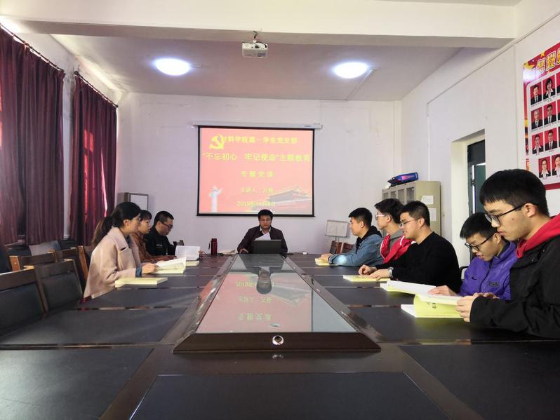 本网讯(通讯员万杨)为进一步贯彻和落实学校党委关于“不忘初心,牢记使命”九个一的工作要求和部署,2019年11月4日在材料楼五楼党建活动室,第一学生党支部开展以“不忘初心,牢记使命,争做新时代优秀党员”为题的专题党课。yl9193永利集团第一学生党支部全体党员参加,学生党支部书记万杨主讲本次党课。
