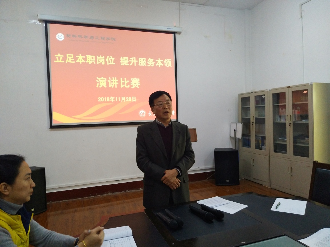 新闻网讯(通讯员邹绍岩)2018年11月27日下午13时30分,学院党委在材料楼5楼党员活动室开展了“立足本职工作岗位提升服务师生本领”演讲比赛。学院全体党员参加了活动。党委班子成员担任本次比赛的评委。此次演讲比赛活动由党委专职组织员邹绍岩主持。