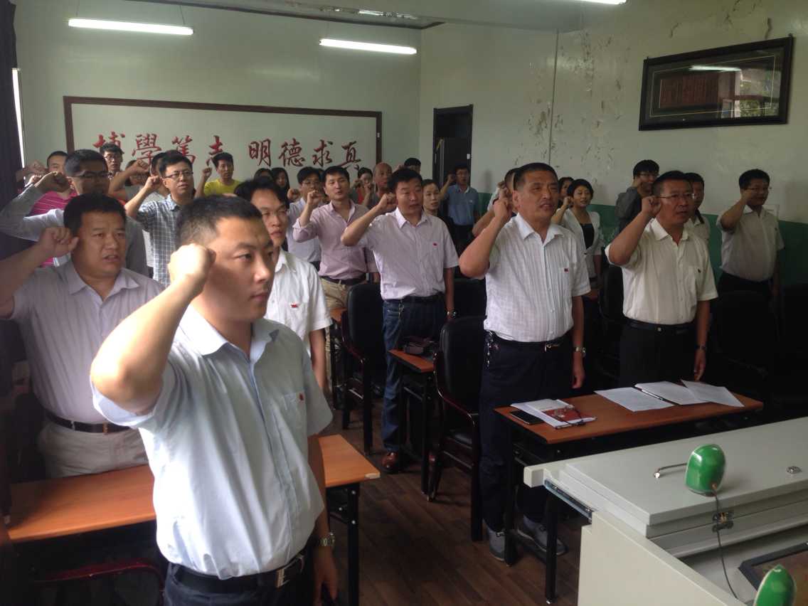 材院网讯(通讯员 刘谦)2015年6月29日下午1时30分,在纪念建党94周年之际,材料学院在材料楼学术报告厅举行了庄严而隆重的党员重温入党誓词活动。学院全体教工党员、学生党员参加了此次活动,活动由党委副书记吴文东主持。