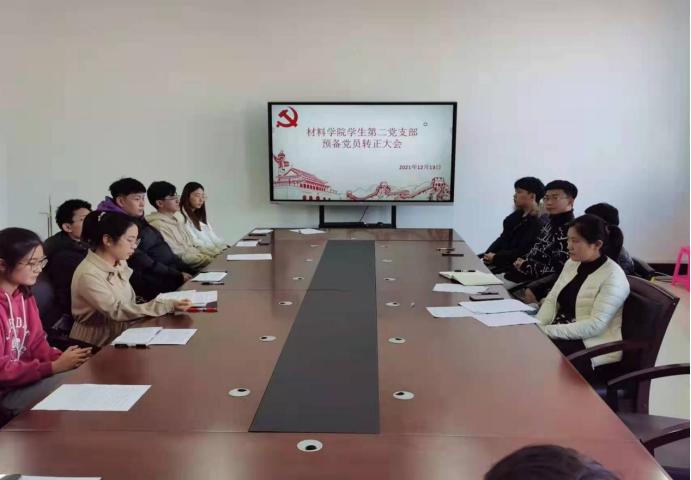 2021年12月13日yl9193永利集团学生第二党支部于材料楼425会议室召开转正大会。本次大会由党支部书记张晓君主持,对王鑫等7名同志是否能如期转正进行讨论和表决。
