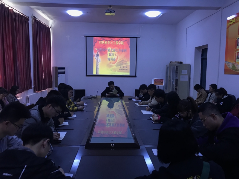 2019年4月4日,材料科工程学院学生党支部在材料楼五楼召开中国共产党工作条例(实行)培训会,会议由学生党支部书记万杨主持,全体学生党员参加会议。