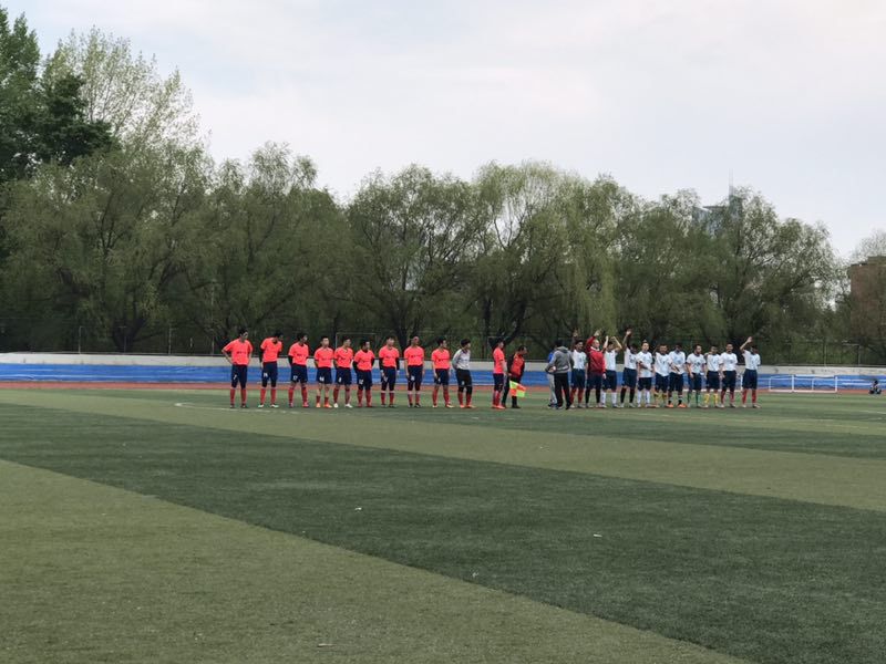 我院的士气没有丝毫的减弱,愈战愈勇,队员们运用自己缜密的队形部署,细腻的脚法,在比赛第四十五分钟,材料获得角球,发入前点,留学生防守队员在禁区内手球,裁判判罚点球。吴振主罚的点球被留学生门将扑出,随后跟进补射得手。扳平比分。现场观众掌声不断。