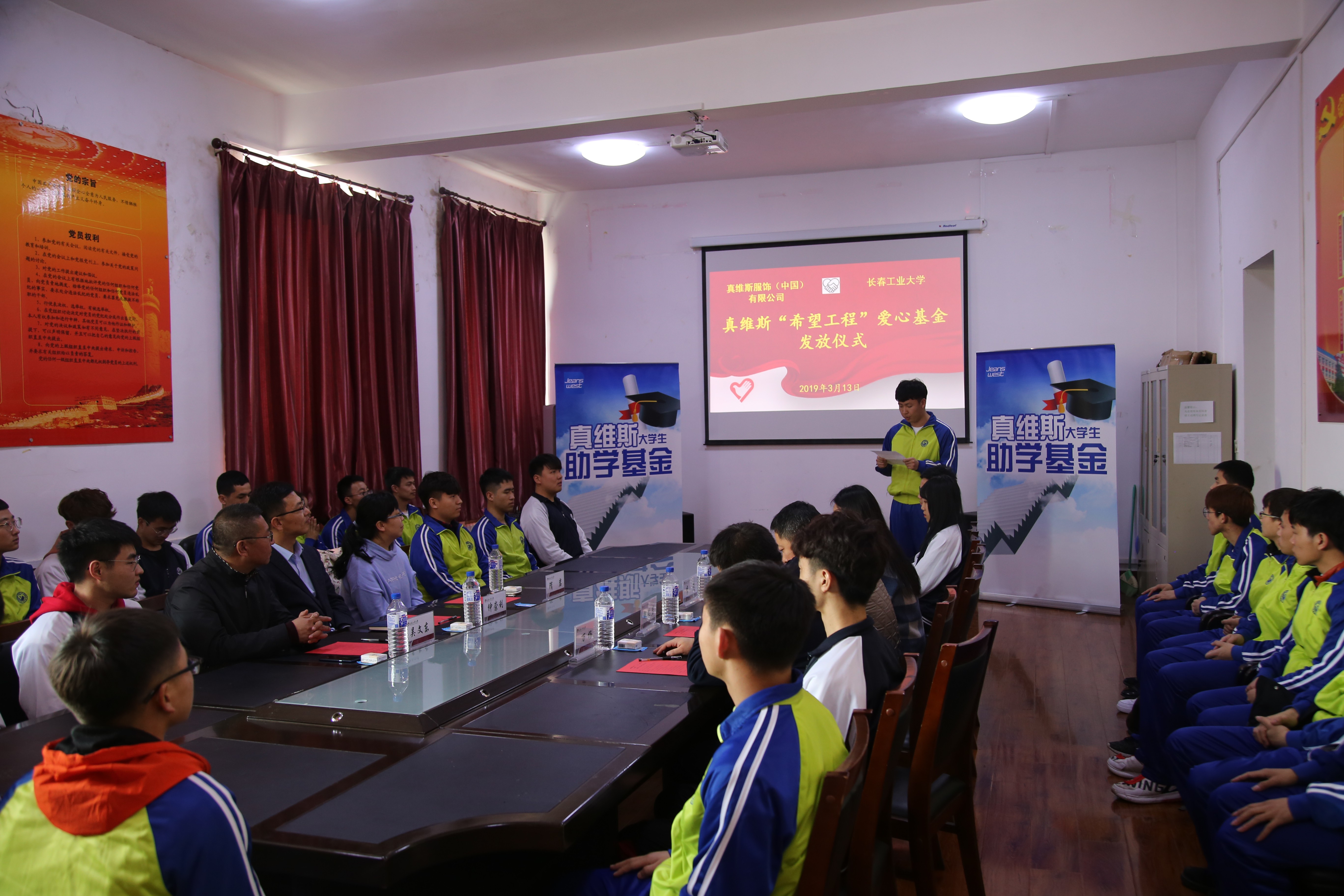 2019年3月13日,“2018-2019学年真维斯大学生助学基金”颁发仪式在yl9193永利集团举行,真维斯服饰有限公司东北口岸行政经理隋岩、永利官网团委书记仲崇利、yl9193永利集团党委副书记吴文东、yl9193永利集团专职组织员邹绍岩、yl9193永利集团学生党支部书记兼团委负责人万杨、会议由yl9193永利集团2017级辅导员李爽主持,我校共39名家庭贫困大学生受到本次助学金的资助。