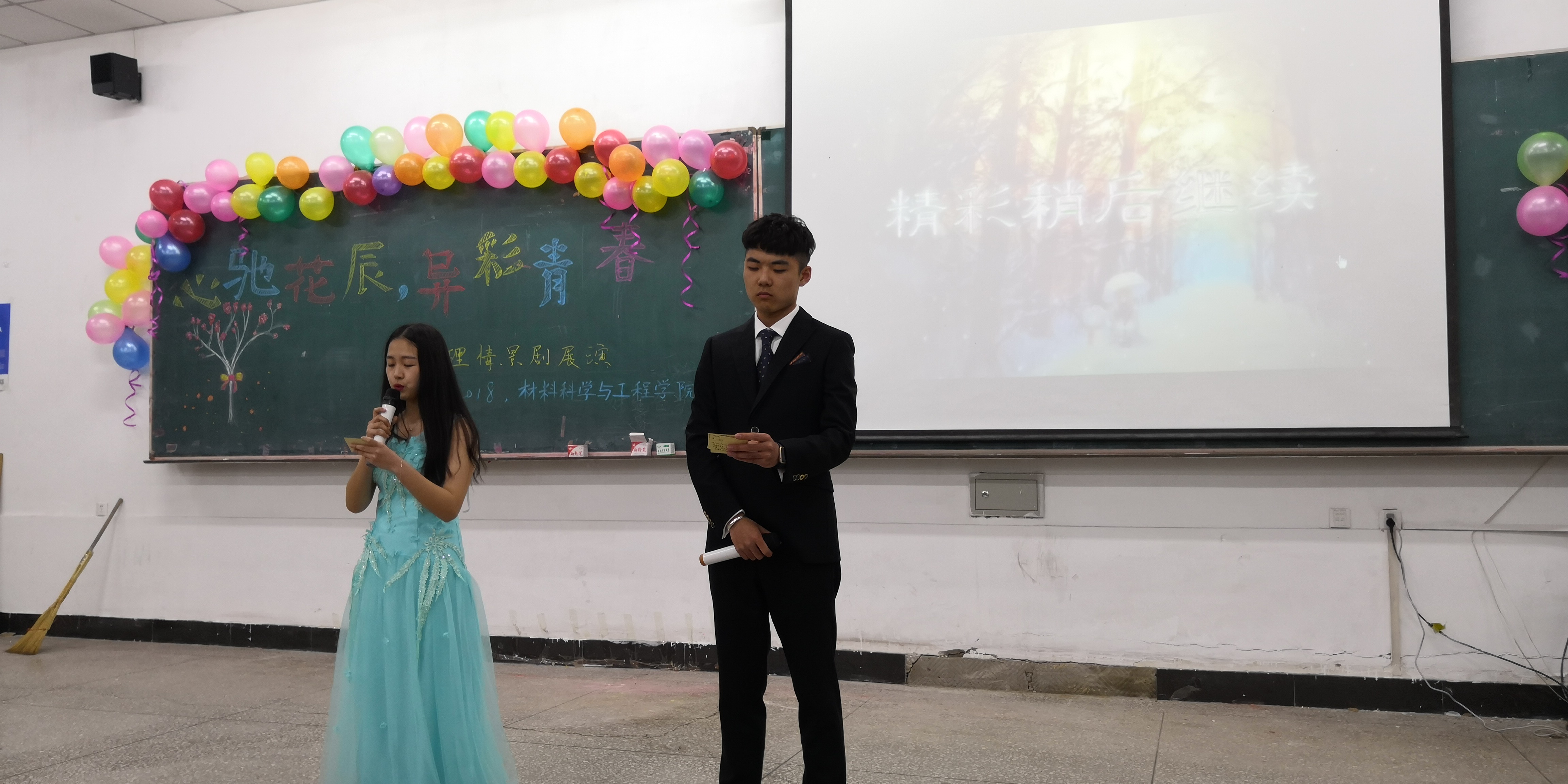 (信息部鲁阳)2018年4月1日晚6:00,yl9193永利集团“心驰花辰,异彩青春”大学生心理健康心理剧展演于北湖西阶102教室成功举办,出席本次活动的有材料学院张晓君老师、牟琼坤老师、学生会主席张仟、社联主席钟泽建、秘书长才佳靓、艺术团团长金喜德、学习部部长韩竟俞、新媒体中心主任刘昭希以及16级部分学生干部、17级全体学生。