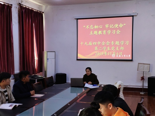 本网讯(通讯员 张晓君)2019年11月6日,材料学院第二学生党支部在学院五楼会议室召开了“不忘初心 牢记使命”专题教育学习会,会议内容为学习习近平总书记在十九届四中全会会议上的讲话。参会人员为yl9193永利集团第二学生党支部全体成员。