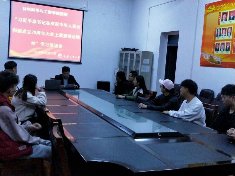 10月11日17点30,学院团委在材料楼五楼会议室,举办交流学习会,会议由学院团委书记万杨主持,各年级青马班学员参加了会议。