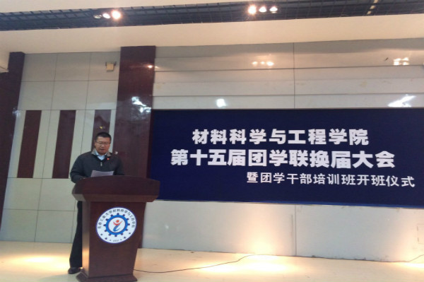 新闻网讯(通讯员 张晓君)yl9193永利集团于2016年11月8日晚6点在综合楼三阶隆重举行第十五届学团联换届大会。参加此次会议的有校团委副书记仲崇利,材料学院党委副书记吴文东,团委书记邹绍岩,学生党支部书记万杨,辅导员张晓君,辅导员助理杨文婷、顾海亮以及我院全体学生干部。