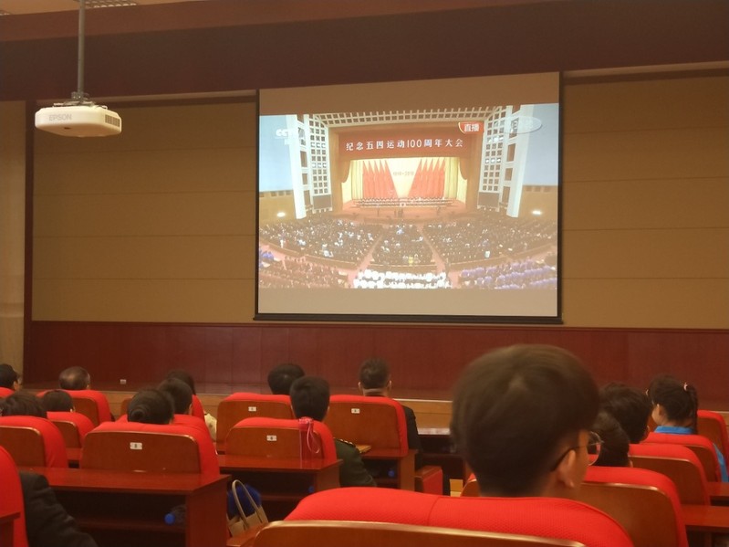 本网讯(通讯员 李爽 万杨)为纪念五四运动100周年,传承五四精神,4月30日上午10时30分材料学院分别在南湖、北湖两个校区,从校院班寝四个层面组织学院师生共同观看了在人民大会堂举行的纪念五四运动100周年大会。