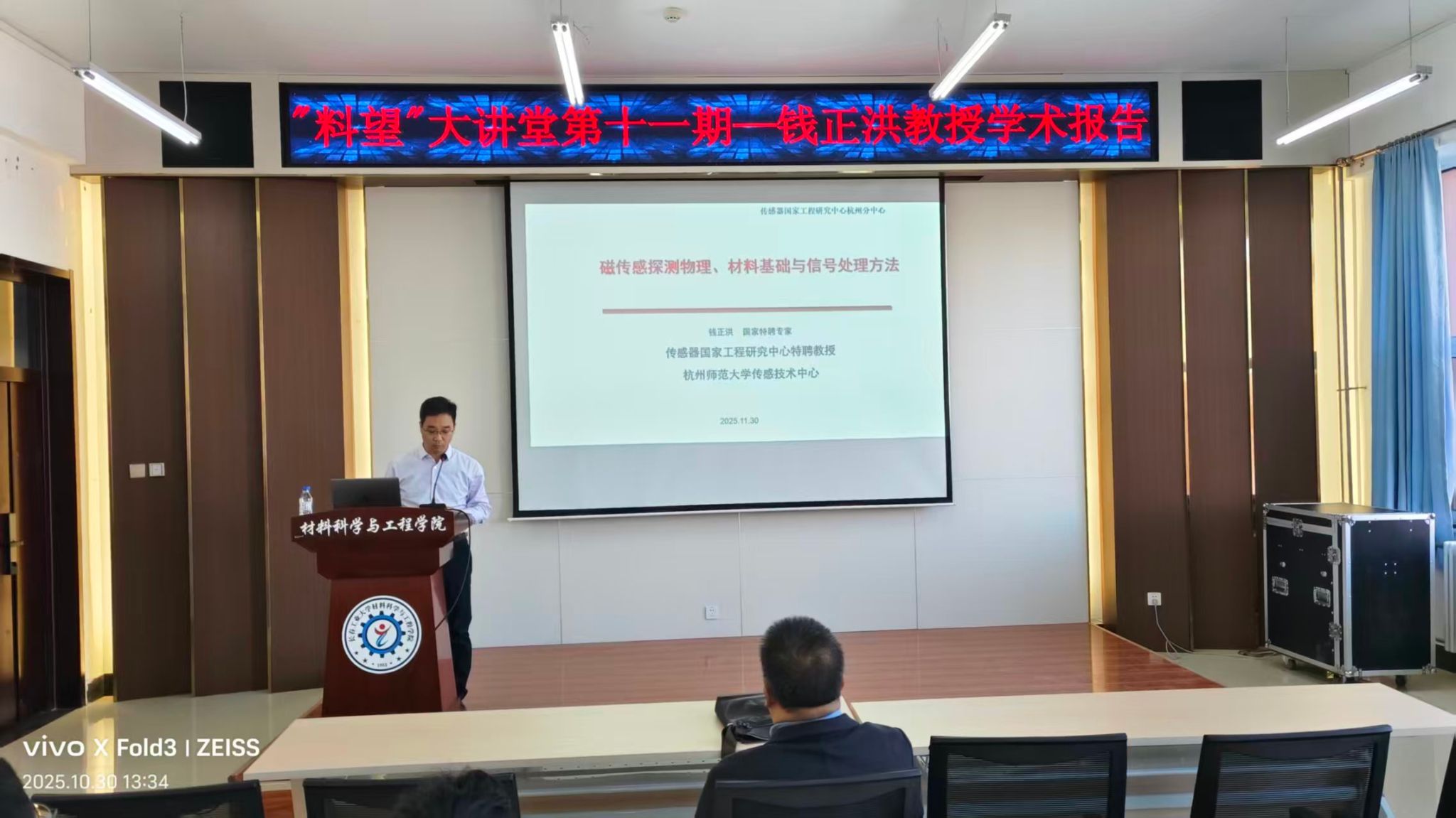报告会上,钱正洪教授系统的介绍传感器的分类及智能化传感器发展趋势,并探讨我们认识宏观和微观世界的理论基础以及相应的传感与测量手段。同时介绍敏感材料基础、传感器信号调理与数据融合处理方法如卡尔曼滤波、梯度下降算法、AI神经网络等,并探讨磁信号的探测及精确处理技术。结合杭州师范大学传感中心在距离、角度、电流、姿态等传感器的研究成果,讲述磁传感器的设计、制备、系统集成以及在永利集团与新能源汽车等产业化领域中的应用。此次学术报告也有效促进了材料学院与杭州师范大学之间的交流,为后期双方的进一步交流及合作奠定了基础。