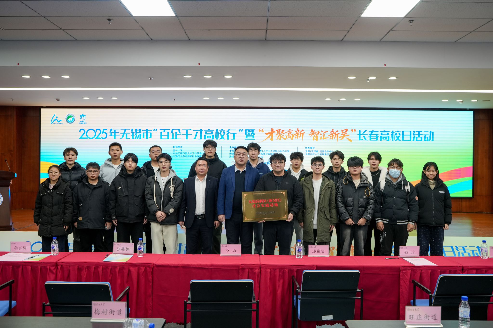 本次活动在吉林大学隆重举行。活动开始之前,学院与无锡高新区(新吴区)代表团进行了座谈,进一步沟通关于学生就业、产学研合作方面的事宜。在活动仪式上,赵健代表学院参与了社会实践基地授牌仪式,刘永帆代表学院参加了活动启动仪式。